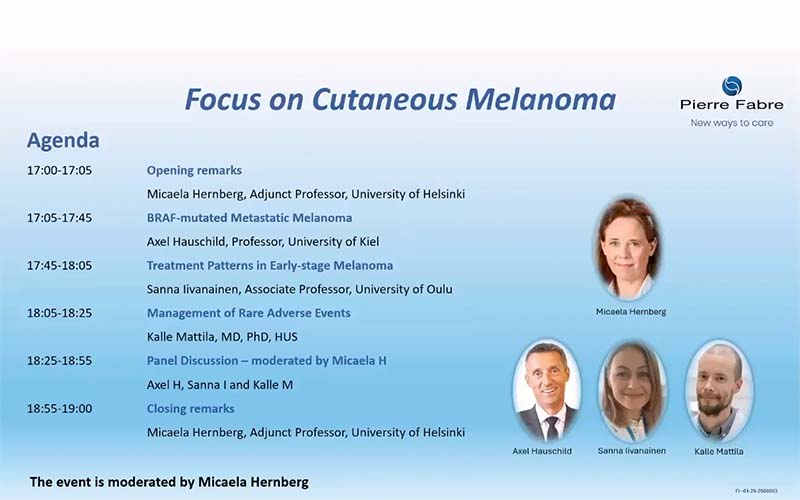 Malignt melanom orsakas av mutationer i onkogener och tumörundertryckande gener som huvudsakligen induceras av UV-strålning. Mutationer av BRAF-genen finns i 35 till 50% av maligna melanom.2 Vanligast är substitution av glutaminsyra med aminosyran valin i enzymets position 600 (V600E).3,4 Substitutionen av valin med lysin sker mindre ofta (V600K).5